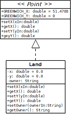 - a Land class that implements a Point interface