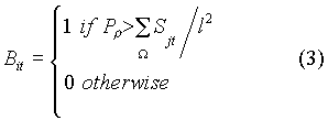 is greater than the current neighborhood occupation proportion. This is expressed as