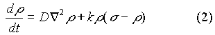 is the central density. Urban models based on economic theory (Muth, 1969), discrete choice theory (Anas, 1982) and other approaches such as entropy-maximization (Wilson, 1970) have made widespread use of the negative exponential function. Braken et al. (1992) developed a model of urban growth in which logistic growth and Laplacian diffusion account for growth (births), and inhibitory effects associated with congested areas and migration modify growth and spread. In the model developed here, logistic growth and Laplacian diffusion are used to account for births in the form of a reaction-diffusion equation in which the birth rate is expressed as the rate of change of density with respect to time: