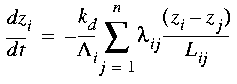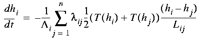 where Vi represents volume or mass stored at node i, Ni is the number of neighbor nodes connected to node i, and Qji is the total flux from node j to node i (negative if the net flux is from i to j). Numerical implementation of equation (1), however, depends on how the flux terms are defined.