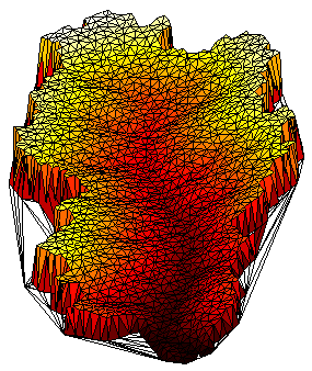 An example of a lake computed using the Lake Fill algorithm is shown in Figure 7. The algorithm is robust enough to handle any arbitrary initial condition, and is useful for modeling natural or artificial reservoirs or, in geological applications, for modeling rising baselevel.
