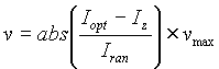 where v is the vertical velocity of the dinoflagellates (positive if the dinoflagellates are beneath the depth of the optimum light levels, negative if the dinoflagellates are a lesser depth than the optimum light levels), vmax is the maximum velocity, Iopt is the optimum irradiance (150 micromolar photons m-2 s-1, after Heaney and Furnass, 1980), Iz is the irradiance at the depth of the dinoflagellates, and Iran is an irradiance range parameter.