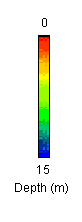 Surface currents were deflected clockwise from the wind direction (Figure 2a) by the Coriolis force. This caused downwelling at the downwind area of the lake, particularly in the east and south (Figure 2b) and upwelling at the upwind area of the lake, particularly in the west and north. Vertical current speeds were on the order of 0.0002 m s-1). There was a progressive rotation in current direction with depth due to a decreased current speed as the thermocline was approached (Figure 3). Immediately above the thermocline, currents moved towards the south at slightly under 0.005 m s-1). Beneath the thermocline, current continued to be deflected clockwise.