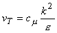 where cmicro is a constant (0.09), k is the turbulent kinetic energy, and epsilon is the rate of dissipation of k.