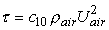 where c10, is the friction coefficient (1.1x10-3, after Bengtsson, 1973), rhoair is the density of air (1.2 kg m-3), and Uair is the wind velocity. The shear stress from the wind was added to the Navier-Stokes equations.