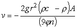 where v is the vertical velocity (positive if the phytoplankton is rising, negative if it is sinking), g is the gravitational acceleration, r is the colony radius, rho c is the phytoplankton density, rho is the water, A is the proportion of the cell volume relative to the colony volume, phi is the form resistance, and n is the water viscosity. Density was estimated as a function of cell carbohydrate concentration according to the phenomenological method of Kromkamp and Walsby (1990) (see also, Howard et al., 1995, Belov and Giles, 1997):