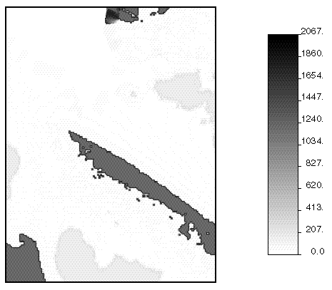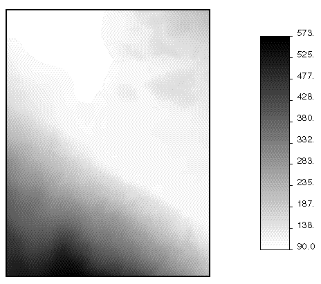 Figure 1. LANDMASS DTM (region NY11NE) with values estimated, using OK, to a 5-m grid. The Northwest corner of the region is an area of water.