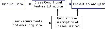 These factors suggest a procedure as diagramed in Figure 4. Key steps are the feature extraction step, which has become of fundamental importance with the increase in dimensionality of hyperspectral data, and the circumstances of deriving adequately precise class descriptions. We shall elaborate briefly via examples.
