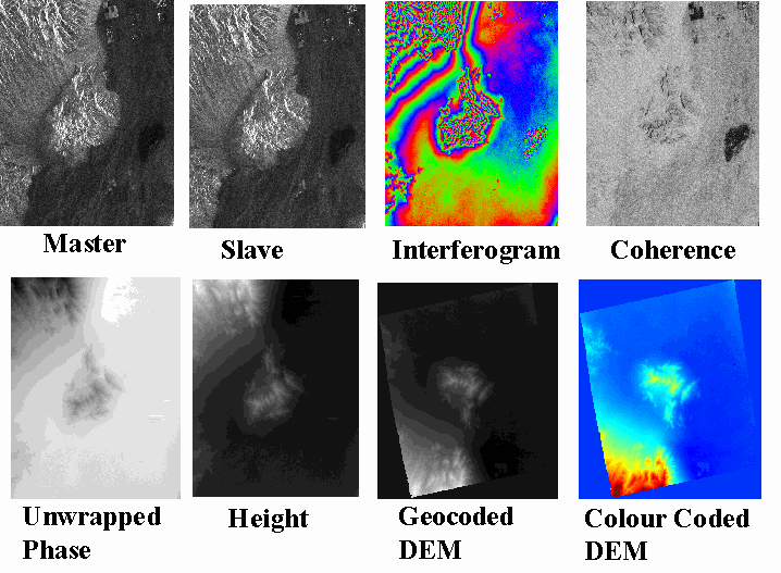 The processing steps for DEM production using InSAR presented in order are as follows (Armour 1997, Kooij 1996, Dixon 1994):