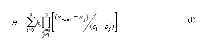 Where hi, i = 0, 1, 2 are elevation values of three intersection points; Si, Sj, i, j=0,1,2 represent the distances between the intersection point and the added point. The furthest point in that direction is used as the original (see Figure 12); therefore, the second point is nearer to the added point, and the third point is on the other side of the added point. In Figure 12, detailed information for north direction’s interpolation is labeled. According to the above definition, we know S0≡0, while S1=P1P0 , and S2=P2P0.
