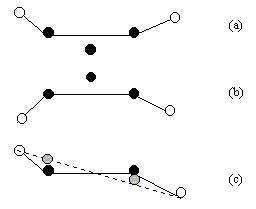 a. If the two ending vertices found in the searching are all higher or lower than the flat edge, a point will be inserted at the middle of the flat edge. A linear method is used for interpolation from both sides, and the final elevation of the added point is the average value (see (a) and (b) in Figure 15).