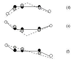 Figure 15. Profile views of flat channels and ridges, and algorithms of a removal process. (a) A single flat channel edge. A middle point is added, TIN is adjusted. (b) A single flat edge is only as a ridge edge. A middle point is added, and the TIN is adjusted. (c) A single flat edge is detected. One ending point is higher than the flat edge, and the other is lower. (d) Two or more flat edges are detected in a ridge network. Vertices in the flat edges are adjusted. The two ending points are both lower than the flat edges. (e) Two or more flat edges are detected in a channel network. Vertices in the flat edges are adjusted. The two ending points are both higher than the flat edges. (f) Two or more flat edges are detected in a channel or ridge network, there are more than two flat points. One ending point is higher than the flat edge, and the other is lower.