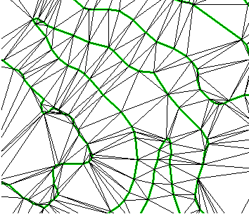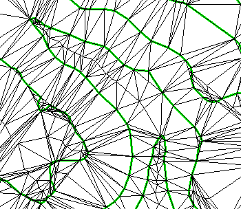 The Delaunay method commonly is used in a triangulation process to produce a TIN model. When constraints are adopted into such a process, a Delaunay triangulation is extended into a constrained Delaunay triangulation. In such triangulation processes, a flat triangle is generated if three vertices of a triangle have the same attributes, or elevation values.