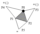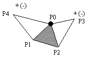 An experimental equation is used for adjusting the elevation value of the vertex. If the minimum elevation difference between points P4-P0 and P3-P0 is: dMinH = Min[( Hp4-Hp0), ( Hp3-Hp0)], then the vertex’s elevation is adjusted as: Hp0 = Hp0 ± dMinH/3.0.