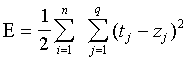 where n = number of input patterns (vectors) in the training set, q = number of output nodes, tj is the expected output at node j (of the output layer) and zj is the actual output of that node. Ideally, E should be a measure of how far from optimal the current state of the network is. In this guise, the MLP classifier is a "winner-takes-all" classifier, i.e., it provides a single class label for each input pixel.