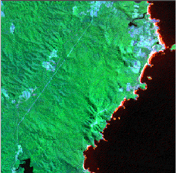Figure 5: Landsat TM composite of the Kioloa region (bands 2, 4, 5, 1990).