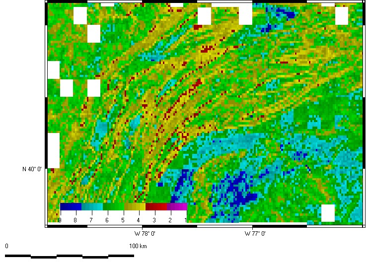 All maps on this page use 1/64 divisions of 1:24,000 DEMs of Pennsylvania.