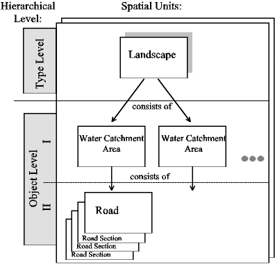 catchment areas of the road in question (object level I) are investigated