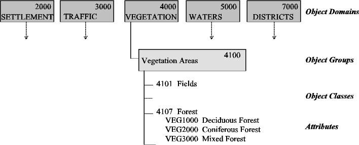 and, where necessary, the attributes of ATKIS are set in parentheses):
