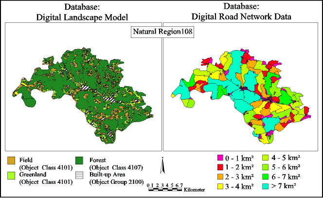derived by using the digital landscape model of ATKIS. For the region of