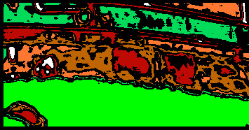 Note that index number 1 (deciduous trees) and index number 4 (grass covered soil) have the highest magnitudes. The sample in question more likely belongs to the class trees, but the highest response comes from an unlikely choice, grass covered soil. Even though we have not made a decision about the nature of this sample, the fact that it was labeled unknown in bands 30 - 33 has helped us in identifying the boundary between the trees and the road.