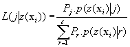 where Pj is the a priori probability of membership of class j, p(z(xi)|j) is the probability density for pixel z(xi) at location xi as a member of class j and c is the number of classes (Thomas et al., 1987; Foody et al., 1992).