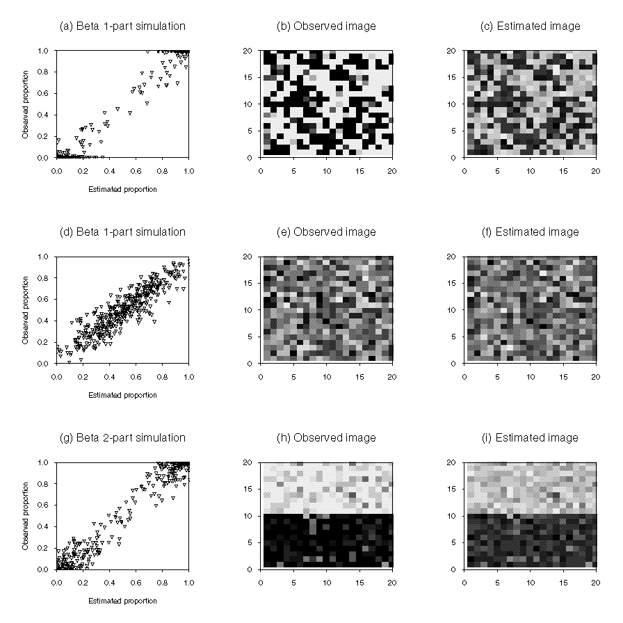 One further distribution was obtained using a three-part beta simulation with the first nine rows of the image simulated with