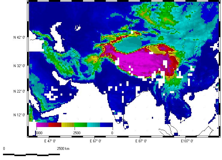 The Tibetan Plateau dominates this map.