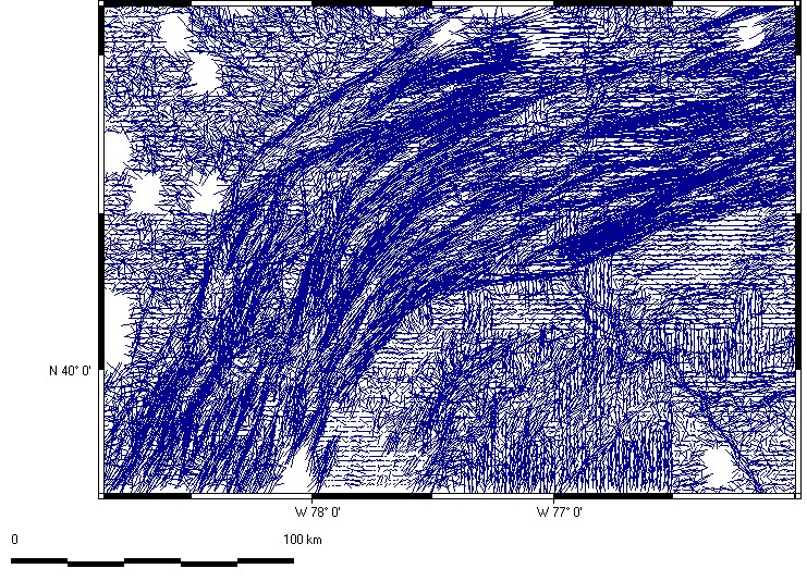 The lines show the strength and orientation of the computed fabric, with the length and orientation of the lines.